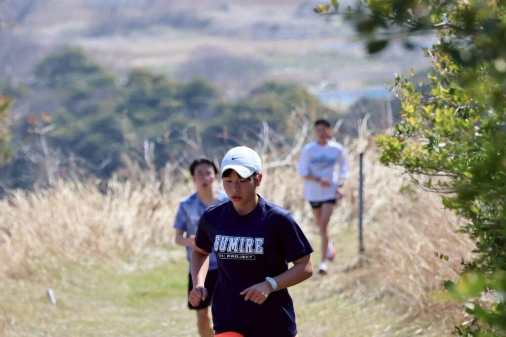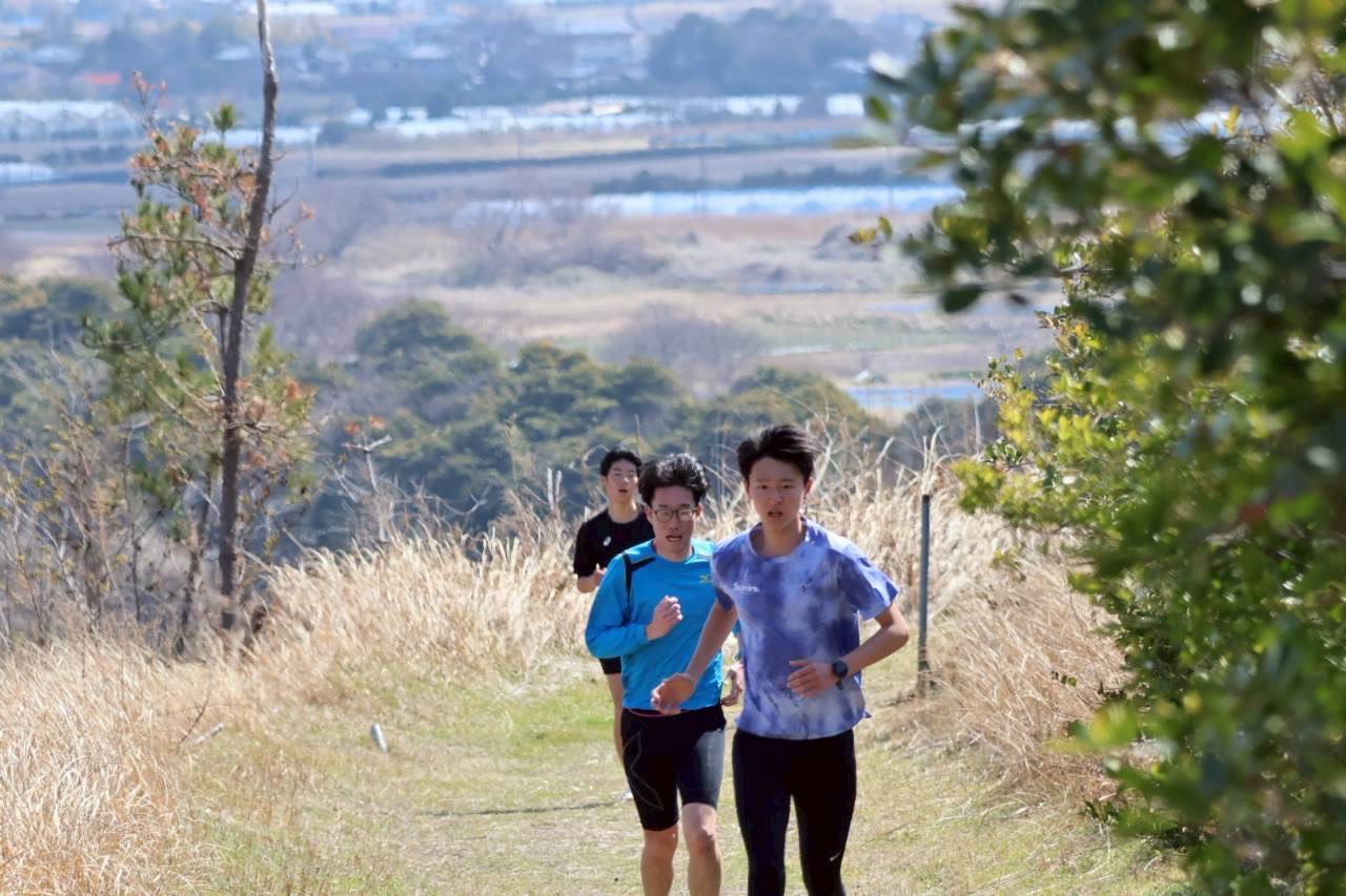 当日は、午前中に変化走、午後には坂ダッシュを実施。